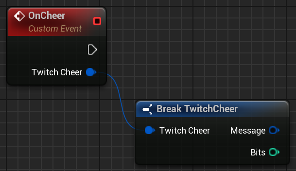 The OnCheer event will trigger whenever a user cheers in chat. This means they attached bits (a paid virtual currency on Twitch) to their message. It is essentially the same event as an OnMessage event, but inclues the number of bits attached to the message. It is worth noting that, as of writing, cheers and announcements don't go together, so please ignore the bIsAnnouncement flag in the message struct.
