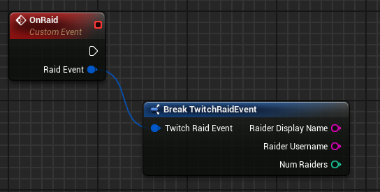 But first, let's take a quick look at binding to these events. Drag out from your Connect to Twitch node's Twitch Chat pin, and select the event you would like to bind to.